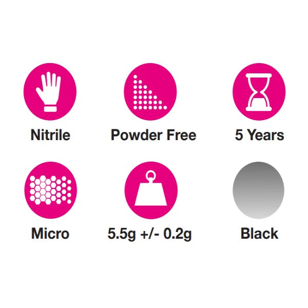 Premium quality Black Nitrile examination gloves that offer greater tensile strength and protection than both Latex and Vinyl.
